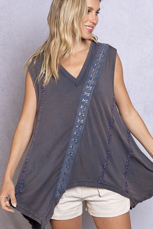 Air Blue Shacket w/Ivory Crochet Sleeves